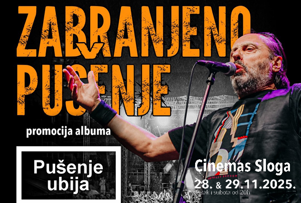 Grupa Zabranjeno pušenje održat će 28. i 29.11.2025. dva koncerta u klubu Cinemas Sloga u Sarajevu! To će biti prvi klupski nastupi Zabranjenog pušenja u Sarajevu nakon gotovo 8 godina. Pripremite se za noć ispunjenu hitovima koji su obilježili generacije! Hitovi koje ćete čuti uživo: “Zenica Blues”, “Balada o Pišonji i Žugi”, “Možeš imat’ moje tijelo”, “Guzonjin sin”, “Jugo 45” i mnogi drugi!